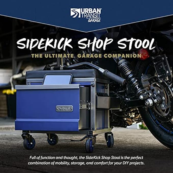 URBANTRANSIT Sidekick Heavy Duty Shop Stool - 500 Lb Capacity Rolling Stool for The Garage and Workshop with Toolbox Storage and 360 Degree Swivel Wheels - an Ideal Mechanics Stool or Workshop Stool