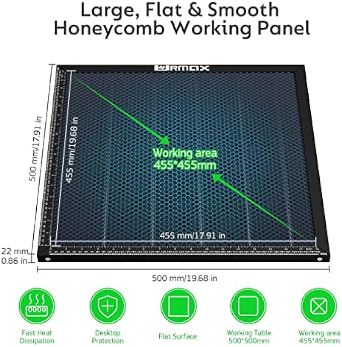 [Universal Honeycomb Work Panel] - Compatible with all types of laser engravers, fiber, CO2 and diode laser cutters on the market. As long as the working area of the laser cutter is not smaller than the size of our honeycomb laser bed (19.68" x 19.68" x 0.87"/500 x 500 x 22mm), it will be perfectly compatible.