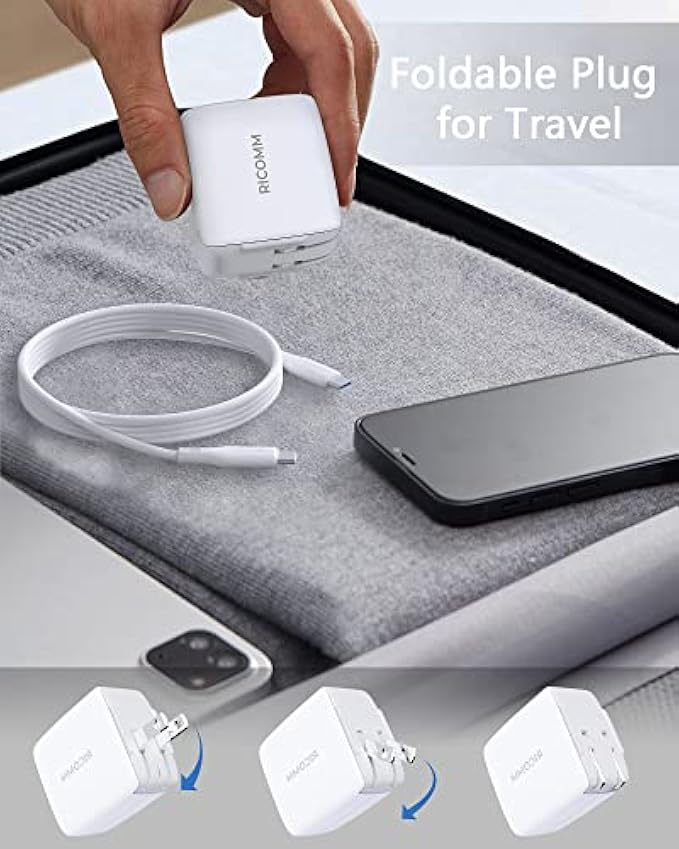 ⚡️【65W Super Fast Charger GaN Technology】The RICOMM 65W GaN usb c charger provides fast charging for almost all USB-A and USB-C phones, tablets, laptops, including iPhone, iPad, MacBook Pro/Air, Samsung, Surface, Google Pixel, Dell XPS and other USB devices. Charge iPhone14/13Pro from 0% to 50% in just 30 minutes!