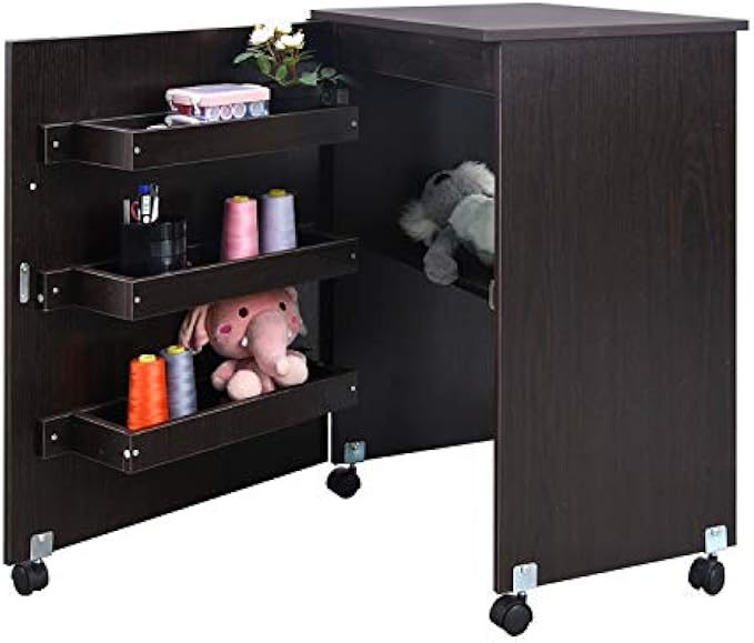 [High Quality]:Our sewing cart is made of high-quality wood and metal fittings.The great hinges make the sewing cart more stable and durable, you don’t need to worry about it to be damaged when expand it due there is a lock keep the stability of the extended desktop.