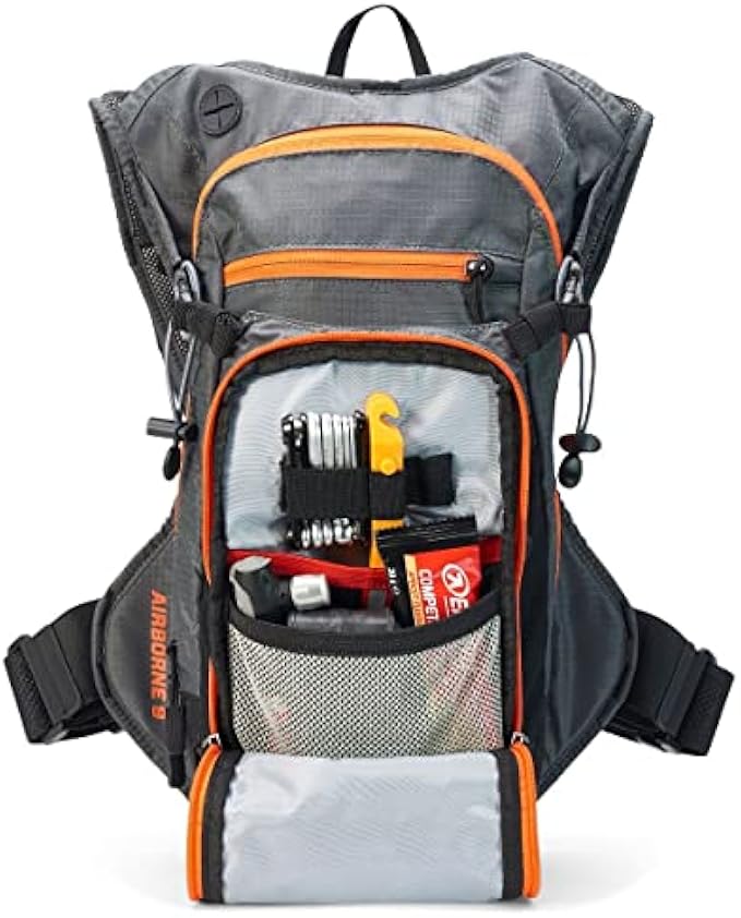 Very happy with the Airborne 9. Perfect for my all day mountain and desert riding. Tools, water and some food are all suitable. Very adjustable and comfortable. Far superior to other brands that use traditional strapping methods.