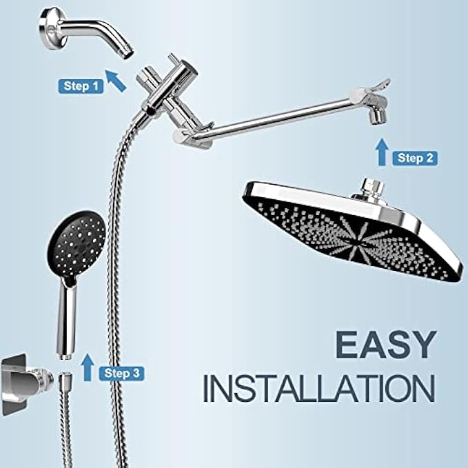 LARGE SHOWER HEAD – Love long showers with a rain shower head, but hate dealing with low pressure and difficult installation? Veken, we've got you covered with a shower head that's 12 inches across to make sure your bottom doesn't get cold. Each rain shower head provides high pressure water flow and is fully adjustable in angle and height. The perfect affordable rainfall shower head for any shower or tub!