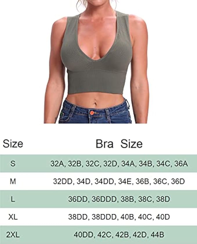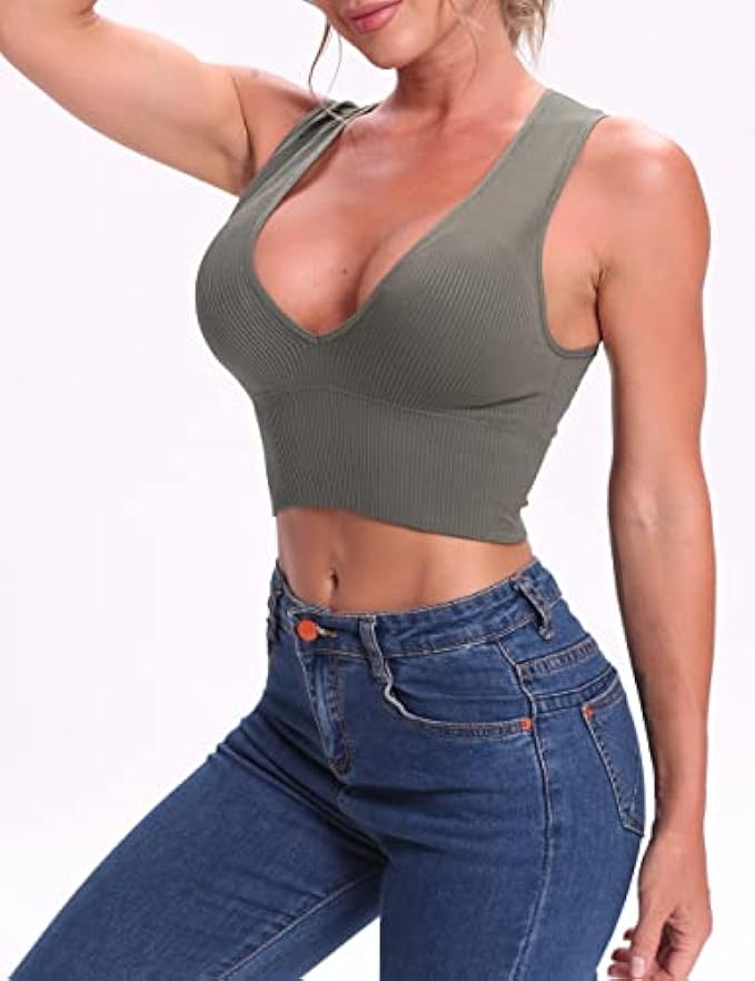 Venbond Women's Sexy Sleeveless Seamless Crop Top Deep Plunge V Neck Ribbed Tank Top with Removable Pads