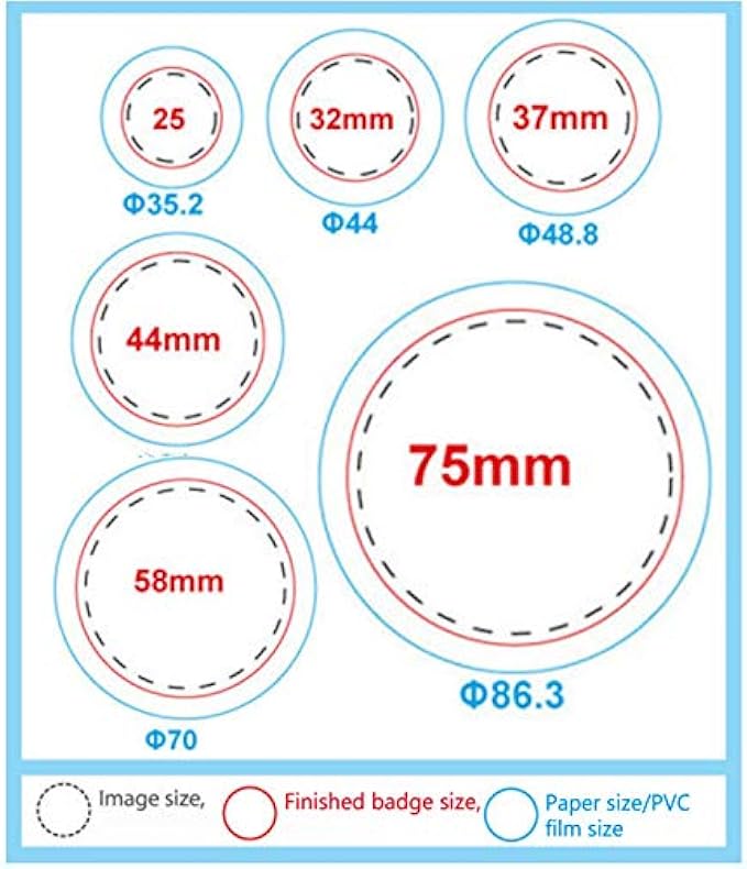 Easy & Quick Operation: The plastic slide of button badge maker can help with precise positioning and make your badge-making process easier. You can change other sizes according to your needs. In addition, the stainless steel dies are interchangeable.