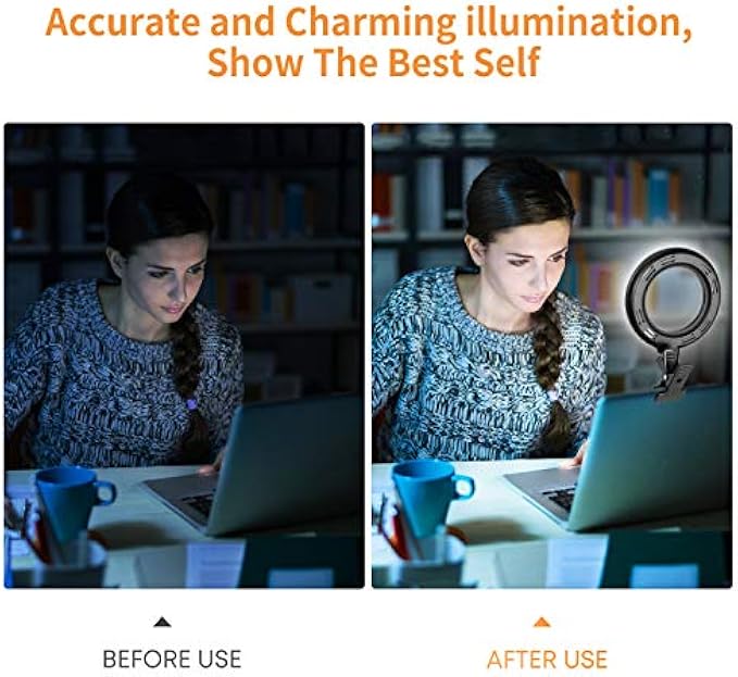 Ring Light Design & Multi-Purpose: The zoom light adopts ring design to produce a soft, pleasing light that helps to smooth shadows and hide skin imperfections. It’s a desirable feature for anyone who’s concerned about how they look on video calls. The light for video conferencing is widely used for video conferencing, remote working, zoom call, self broadcast, live streaming, makeup, YouTube, Tiktok.