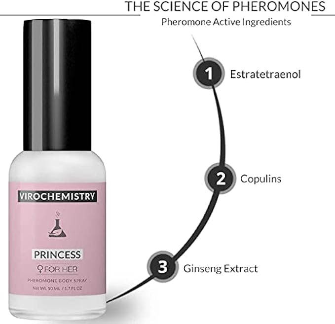 VIROCHEMISTRY Pheromones For Women (PRINCESS) Body Spray - Elegant, Ultra Strength Organic Human Pheromones Fragrance Body Spray 50mL - [Human Grade Pheromones to Attract Men]
