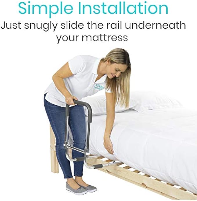 COMPACT BEDSIDE SUPPORT: Providing stabilizing support, the Vive compact bed rail is perfect for seniors, those recovering from hip replacement surgery, or suffering from back pain or other injuries. The compact bedrail allows individuals to independently sit and stand up with greater ease, minimizing the risk of falls and reinjury.