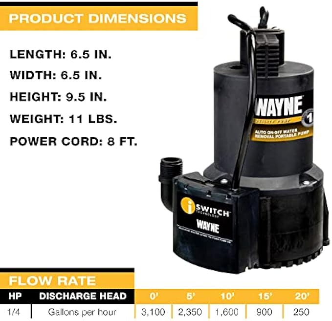 My main sump pump system failed me during the recent heavy rain storms in California. Luckily, one of my friends lent me a portable unit that could attach to a hose. The problem with the unit that I borrowed is that it couldn’t shut itself off, so I had to check on it every 30 minutes, during a vicious rainstorm, so that I could make sure not to burn out the motor. After the storm is over, I found this unit by Wayne. It’s amazing! It has a small form factor, and seemingly only a 1/3 hp motor, but this is crazy, powerful and worked very well with my hose. I also really like the feature where it shuts itself off. At this price point it is totally worth it . If my main sump pump system fails, I feel confident I can drop this into the bucket and it will pick up the slack until I get the unit fixed. I highly recommend this product!