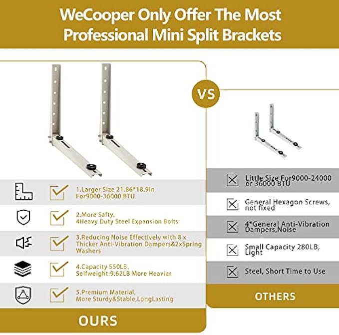 WeCooper Mini Split Wall Mounting Bracket for 9000-36000BTU,Outdoor Air Conditioner Heavy Duty Mount Condenser Bracket in Universal Ductless Heat Pump, Compressors & HVAC Systems,Support up to 500LB
