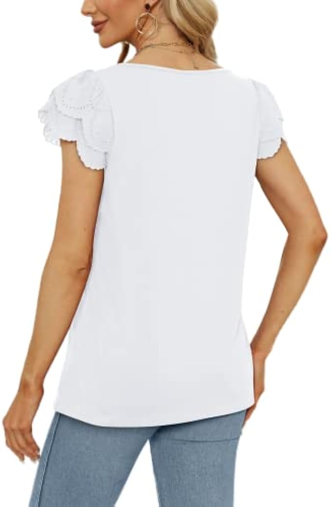 Feature: Womens Summer Tops, Ruffle Sleeve, Basic Tee with Lace Design Will Keep You Cool in the Hot Summer and Enjoy The Whole Day Easily, Solid Color T Shirts is Classic to be a Must-Have in Everyone's Wardrobe!