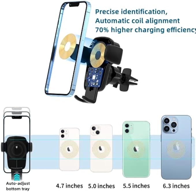【Coil scan automatic alignment】YITUMU wireless car charger is equipped with the latest coil automatic scanning technology, intelligently recognizes the position of the wireless charging coil of the mobile phone, automatically adjusts the alignment of the wireless charging bracket coil and the mobile phone coil, reduces the heating of the mobile phone, and realizes the fastest speed Safe charging of mobile phones.