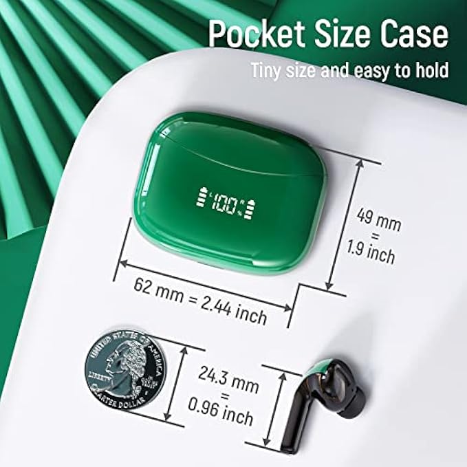 Wireless Earbuds Bluetooth Headphones 60H Playtime Ear Buds with LED Power Display Charging Case Earphones in-Ear Earbud with Microphone for Android Cell Phone Gaming Computer Laptop Sport Green