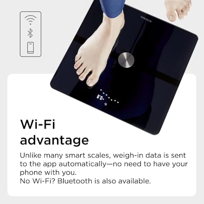 AUTOMATIC SYNCHRONIZATION - Data from every weigh-in appears automatically via Wi-Fi in the free health Mate app. Making it easy to keep track at home workout progress. An Amazon must haves.