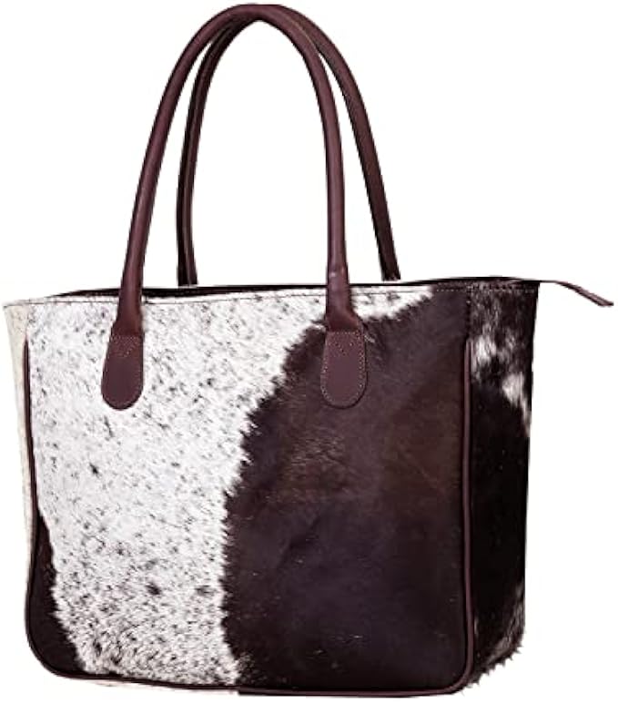 WESTERN STYLE - The Classic Cowhide Tote with double shoulder straps for comfortable carrying is fully functional with just enough room to take all of your Western-style on the go
