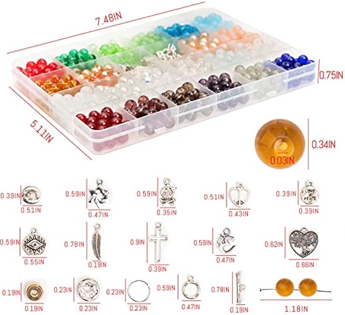 【Vibrant Colors Gemstone Beads】The bracelet making kit with 440pcs 8mm gemstone glass beads, The crystal glass beads are made of high-quality glass material. These beads for crafts are available 22 colors, enough and vibrant to meet your various needs of DIY jewelry making or craft. And there are cute charm pendants that could satisfy your different jewelry making ideas.
