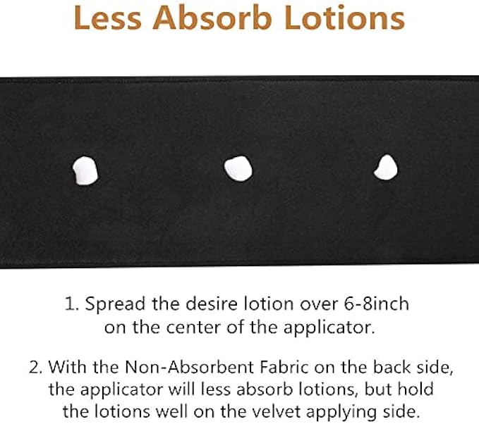 APPLYING LOTIONS EVENLY: With the confortable & soft velvet back applicator, the lotions or cream will be better held on the applying side, allows you applying it to each inch skin of your back evenly. Meanwhile, the applicator is less absorb the lotions due to its Non-Absorbent interior construction, and the edge of the applicator will less rub your skin than the other cloth-edge applicator. Enjoy the applying moment. No more dry-lotions!