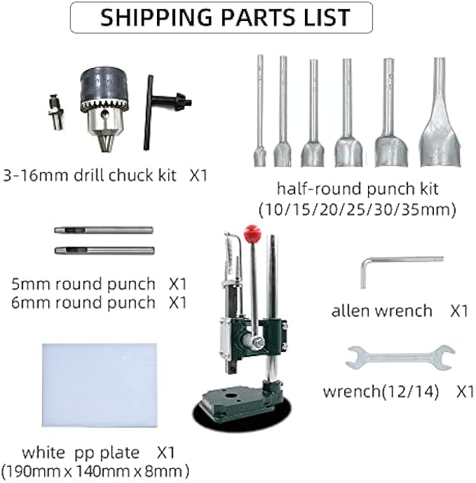 YVOKERN Leather Hand Press Manual Stamping Machine for Punching Leather Stitching Holes with 3-16MM Chuck and Half-Round Punch Kit Get Your Craft Work Slient (YVK-16S-PP-CK2)