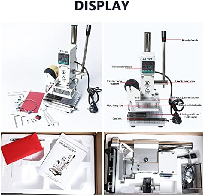 5) Temperature/time For referrence : Paper bronzing: 100 degree/1 S Paper embossing: 300 degree/3 S Leather bronzing: 100 degree/ 1 S Leather embossing: 180 degree/ 3 S PVC bronzing: 100 degree/ 1 S Food embossing: 250 degree/ 3 S Leaves embossing: 320 degree/3 S Wood embossing: 350 degree/5 S